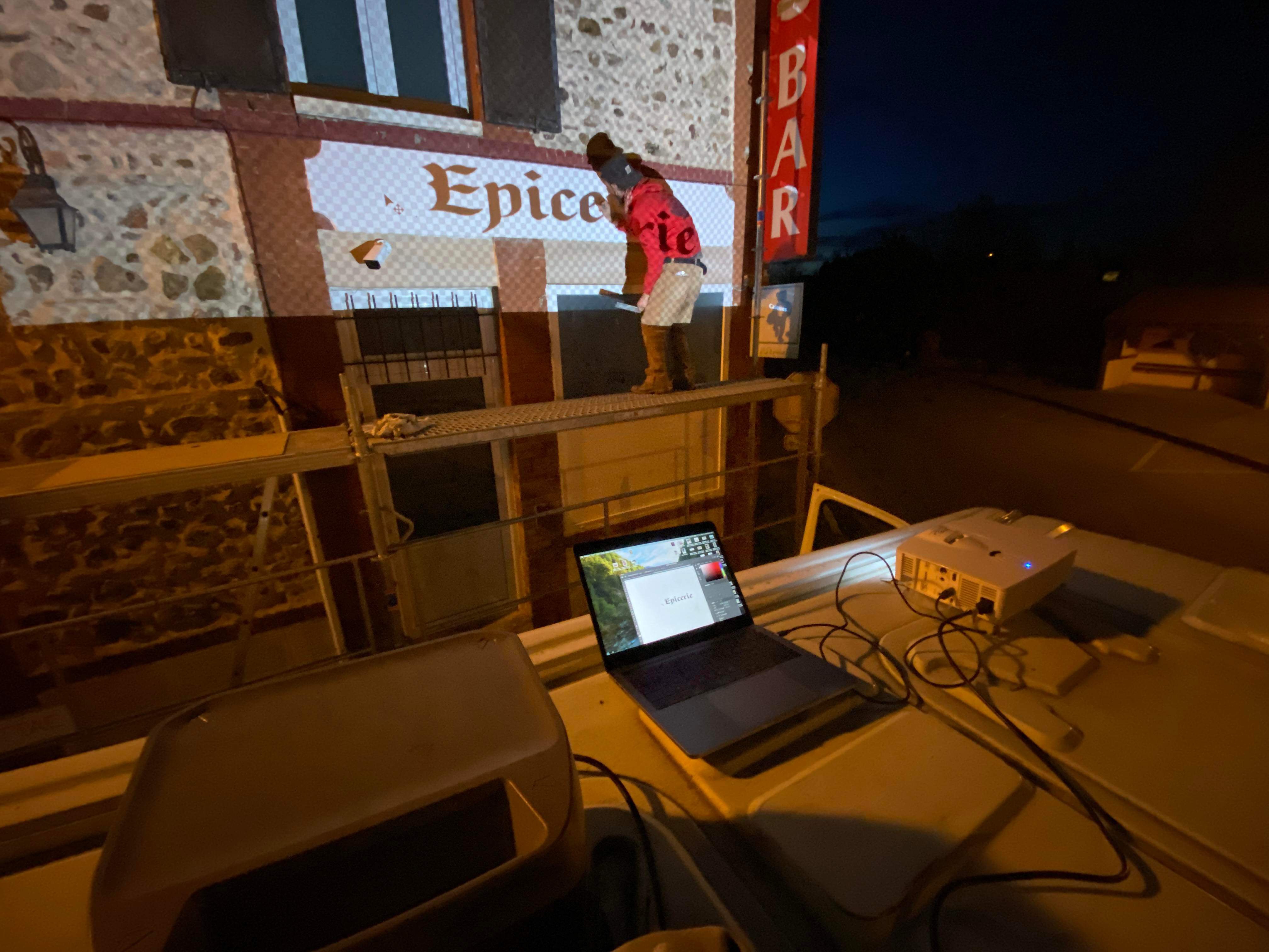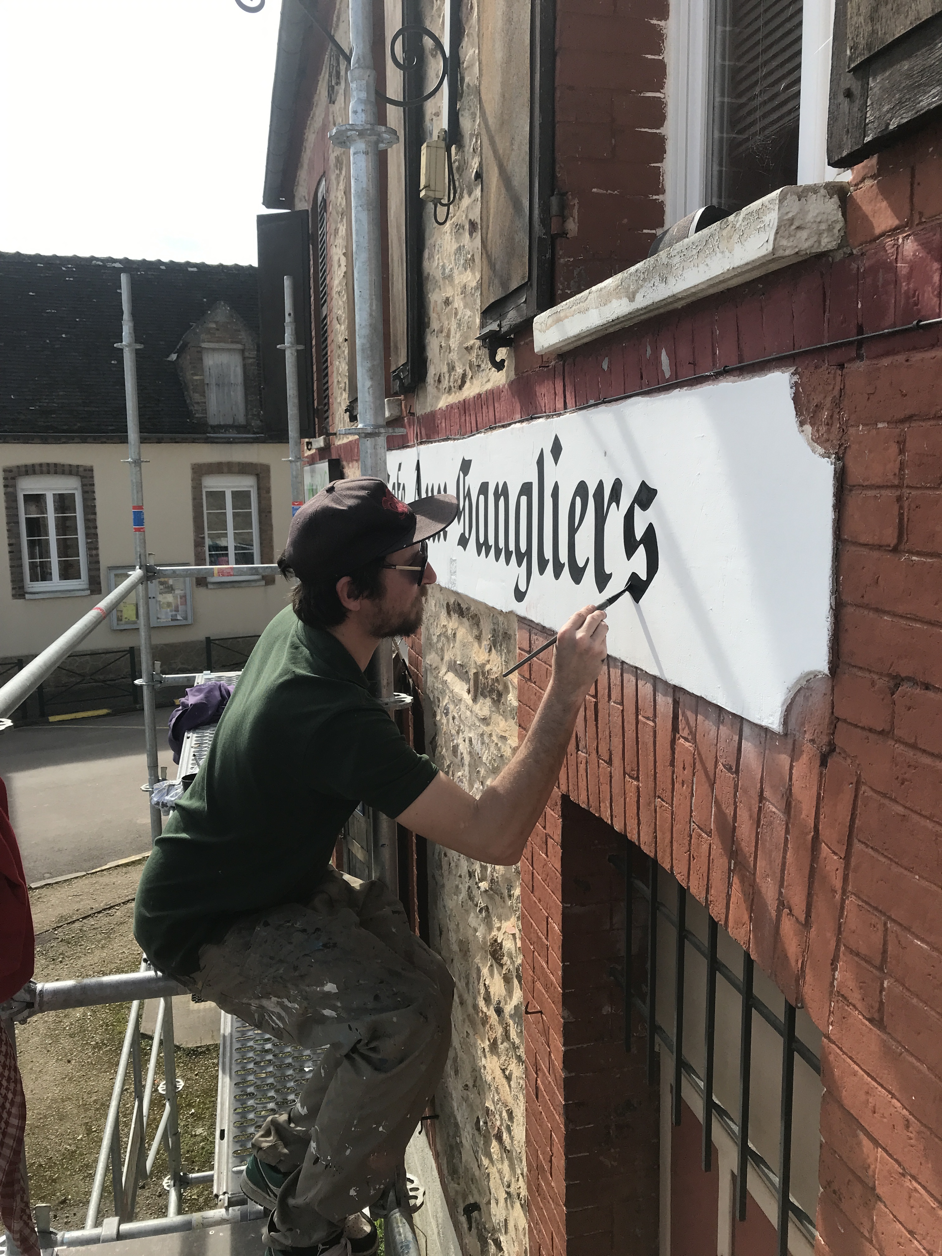 Café Aux Sangliers 31 mars 202412 janvier 2026 • Crazy Spray Peinture de l’enseigne du Café Aux Sangliers. [Montrer sous forme de diaporama]