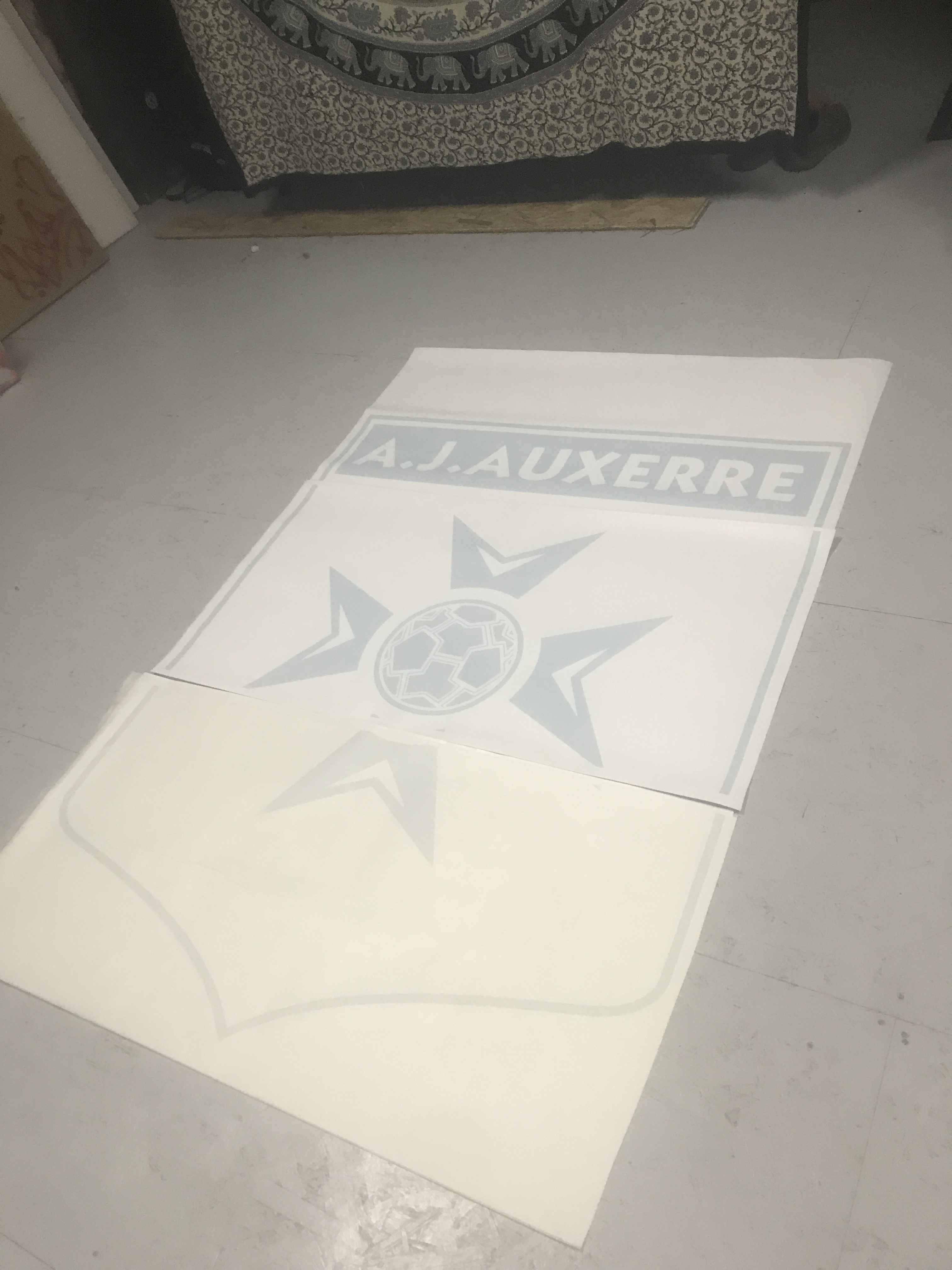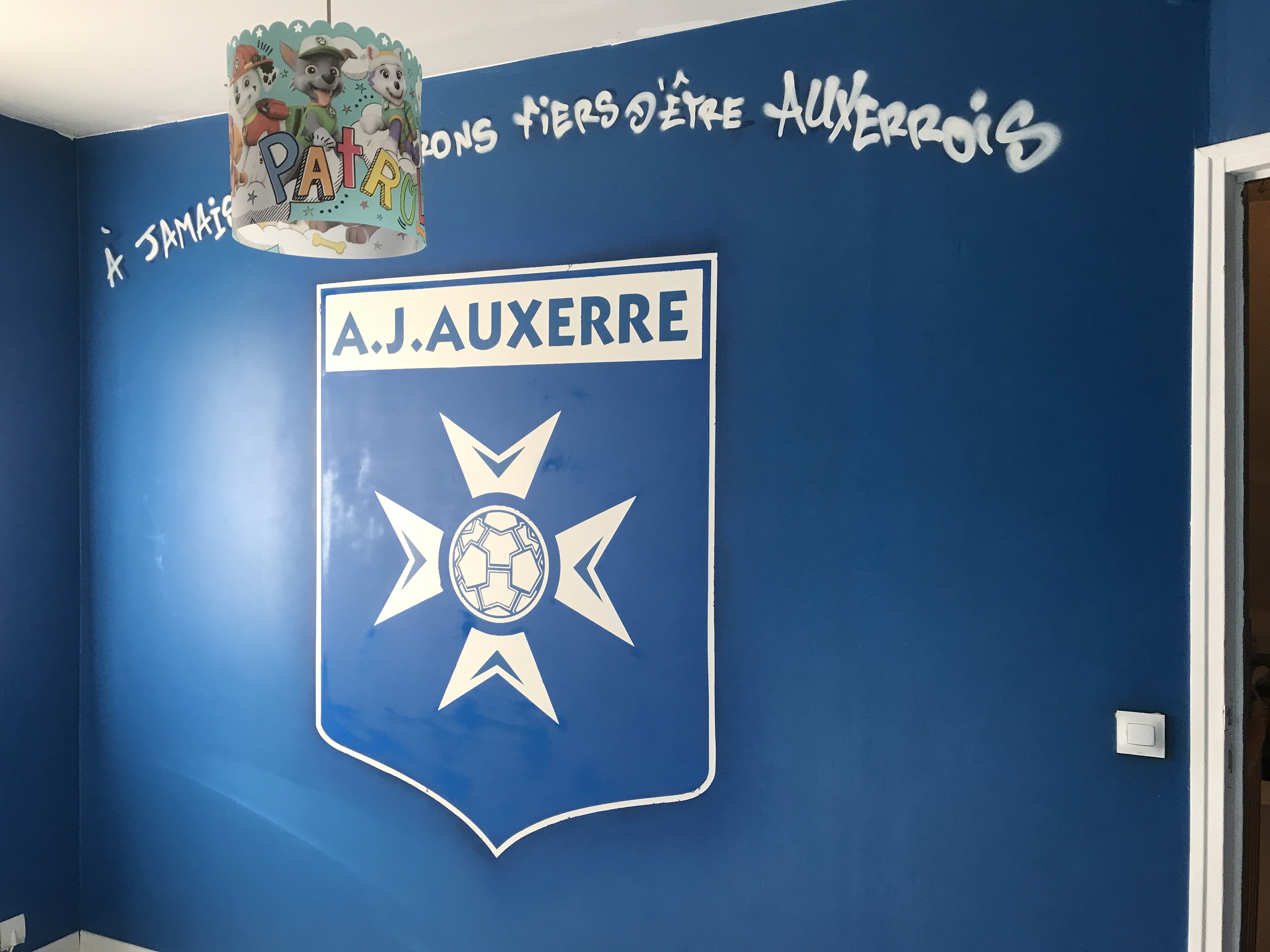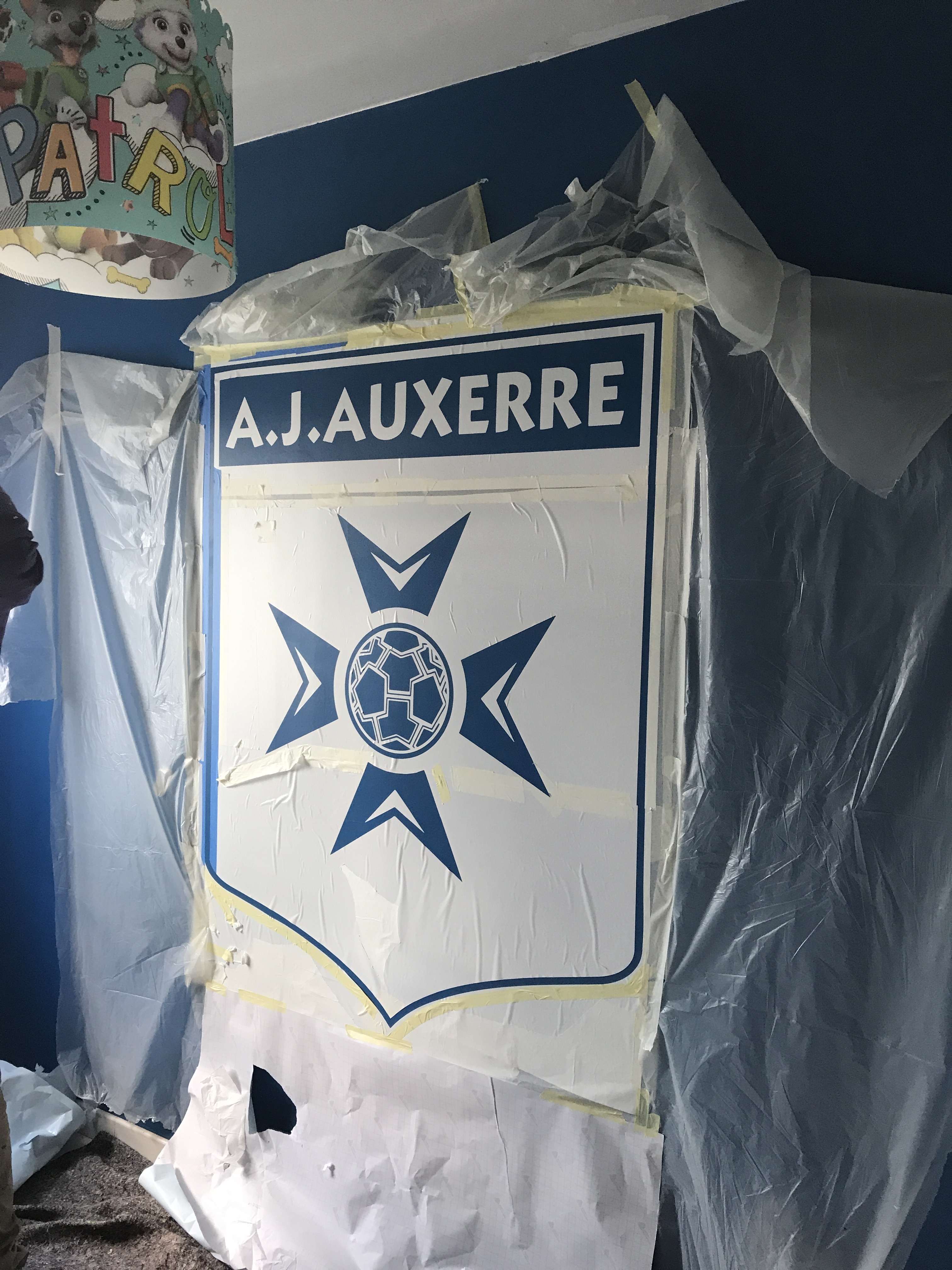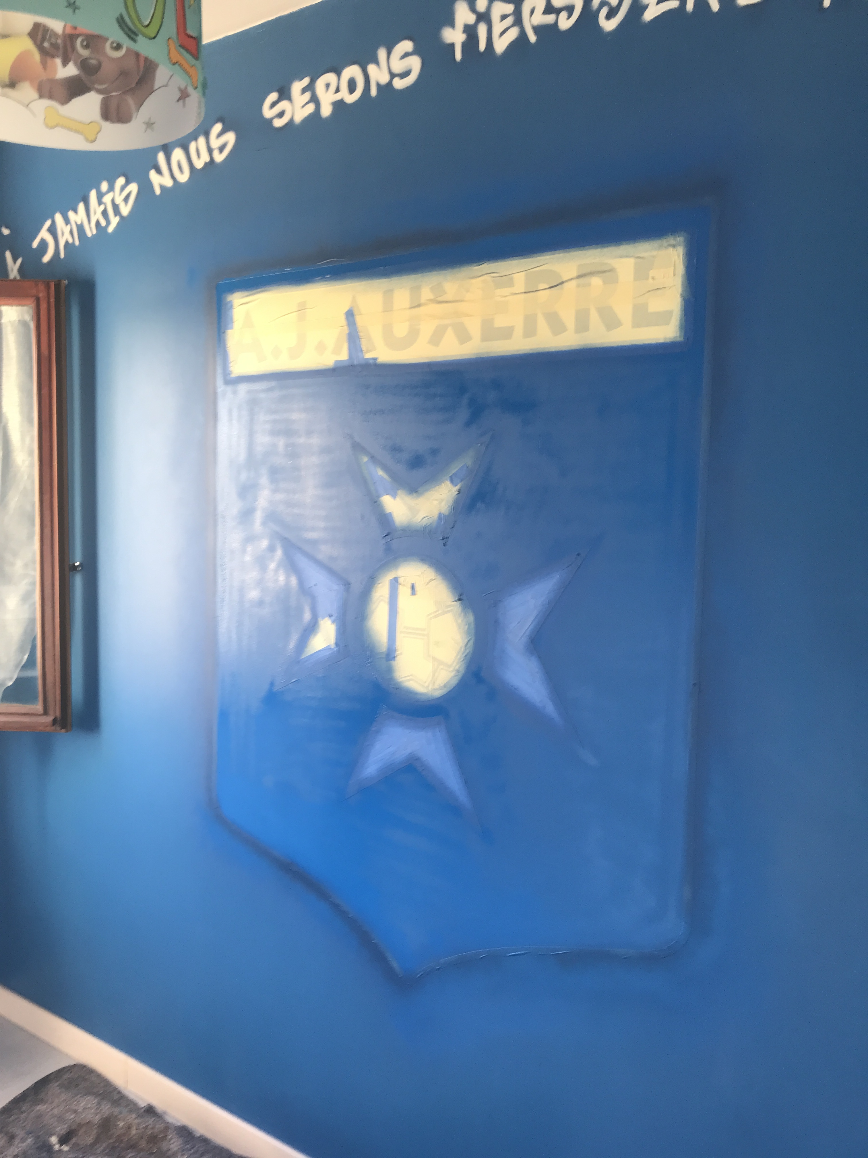 Peinture du logo AJA dans une chambre.